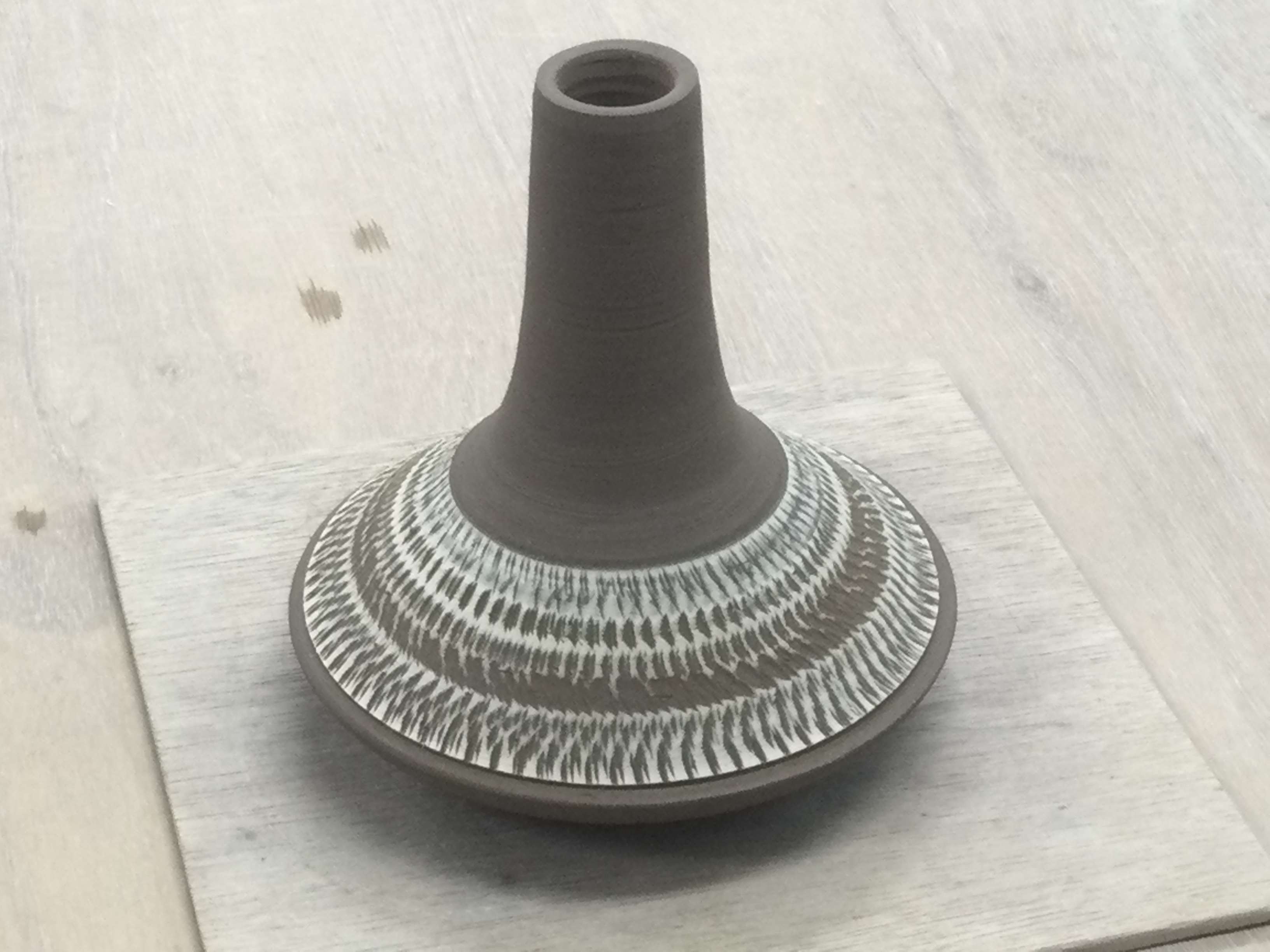 花器に飛びカンナで模様を入れました
