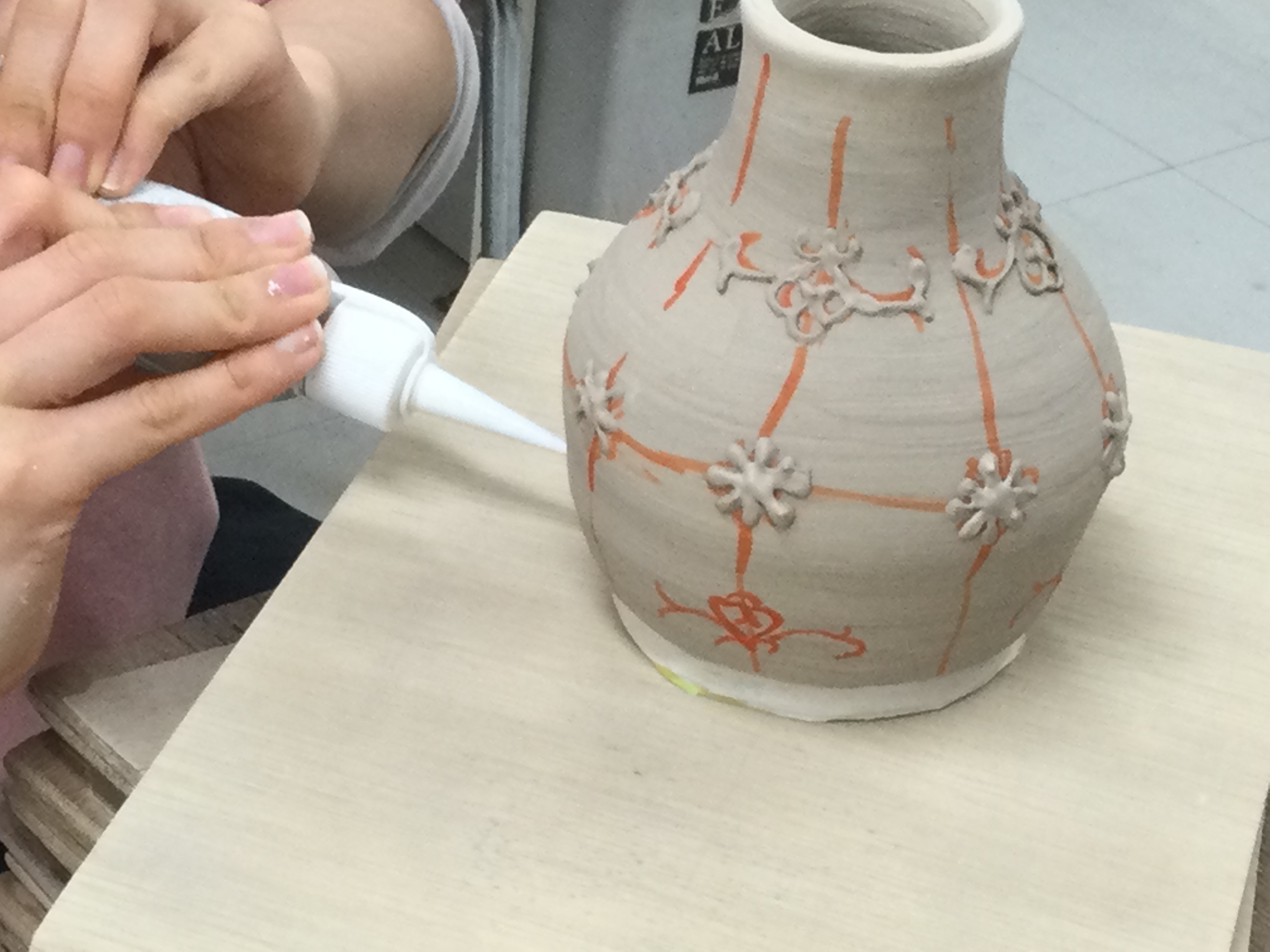 イッチンで模様を描いています